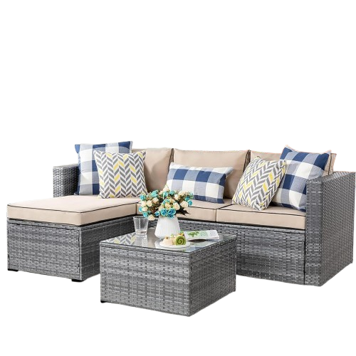 After looking at many sets from different places we ordered this set under a gazebo and although there was some misunderstanding with the box numbers, it turned out to be the perfect set. One box arrived one day and two boxes arrived the next day. It took my son and I about 2 to 3 hours to put everything together. Each box came with two pieces, with hardware for each chair and detailed instructions. It even has locking clips that you put on the bottom to attach them so they stay in place which is another plus. They are nice and sturdy, comfortable and a great addition to our little oasis. I look forward to spending lots of time outside with our family and friends on our new patio set. Note: These are not regular size face down, they just sit low to the ground which makes it easy for our kids to sit and lie down comfortably. Great product for an amazing price!! So if you don’t hesitate the end results will be worth it!!