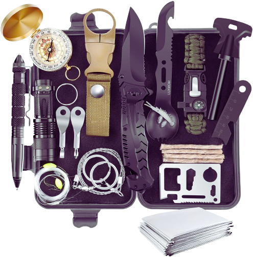 Wow! I’m impressed with this survival kit. It comes with a lot of stuff – a survival knife, a metal spoon that doubles as a knife, a compass, a metal fishing lure, and more. I think it’s a great thing to have on hand for emergencies, hiking off the trail, or camping.