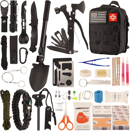 I bought this survival and first aid kit mostly for my camping trips, and I am impressed with how much stuff is packed into such a compact bag. I got some tools out of this bag on my camping trip earlier this weekend and the tools in this bag feel sturdy and the first aid supplies are well organized. It’s something you hope you never use, but it’s reassuring to have everything from basic medical supplies to emergency medical equipment in a single bag. I took this on a short hike and the weight of this bag didn’t feel like extra luggage. I’m considering it as a gift for myself and would recommend it to anyone who wants to be extra safe on a hike or if they just want to keep it in the trunk of their car for emergencies. I’ll keep it in the trunk of my car so it can be used in case I get into any emergency.